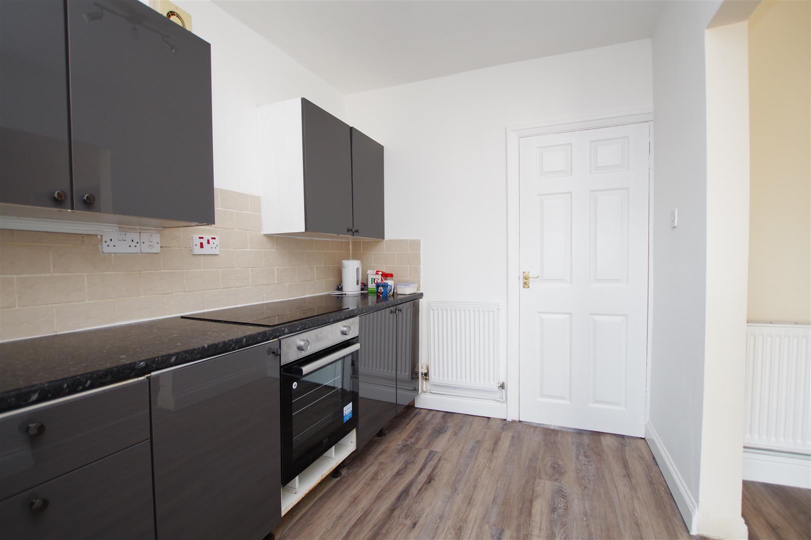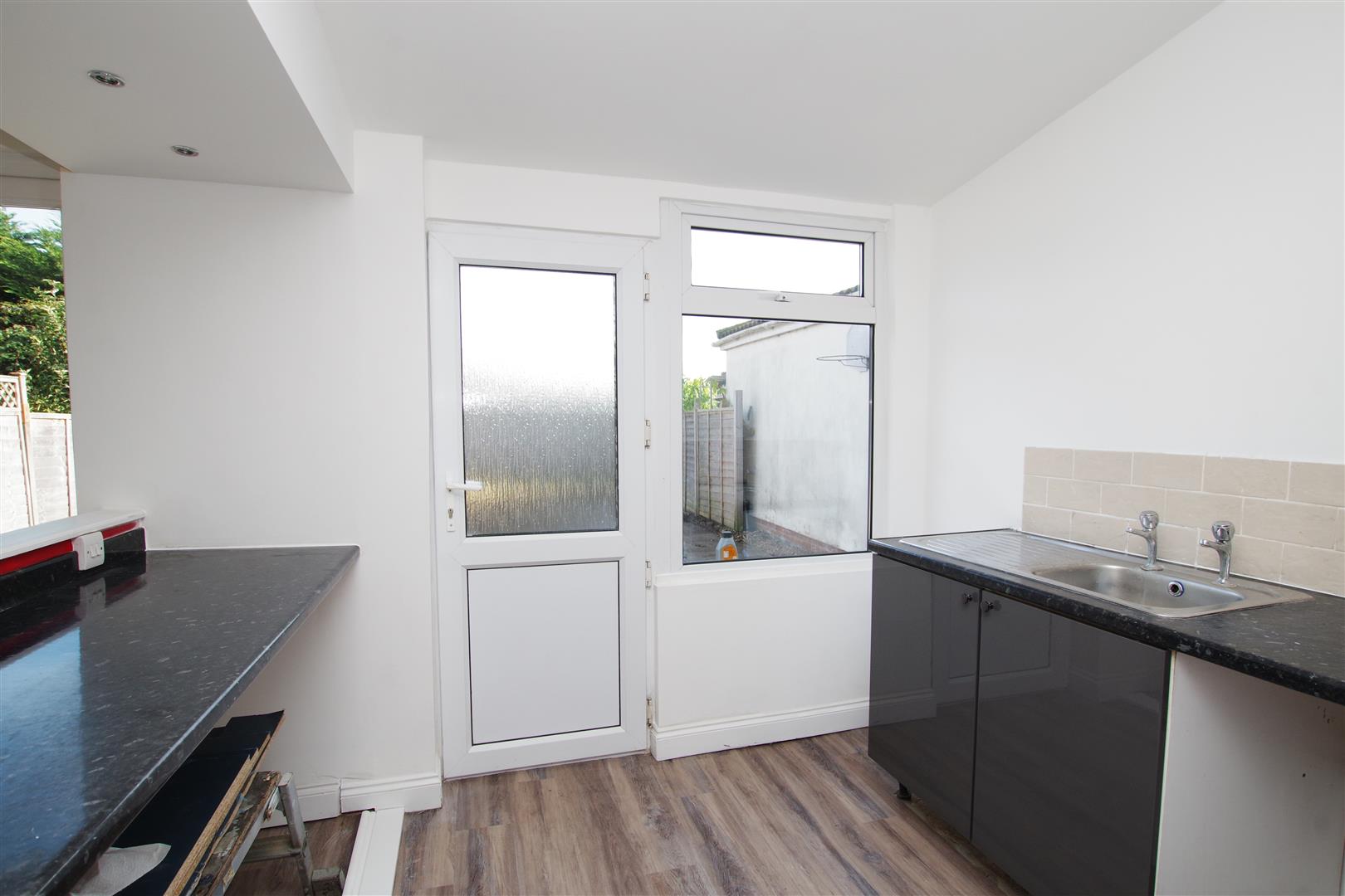 uPVC windows and doors to rear garden. Matching wall and base units with rolled edge worktops over. Stainless steel sink and drainer. Built in single oven. Ceramic hob. Space and plumbing for washing machine. Space for fridge/freezer. Laminate flooring. Part tiled walls. Two radiators.