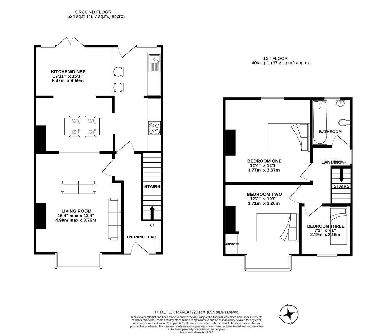 Please note, all measurements of room sizes given are not guaranteed and figures are for guidance only.