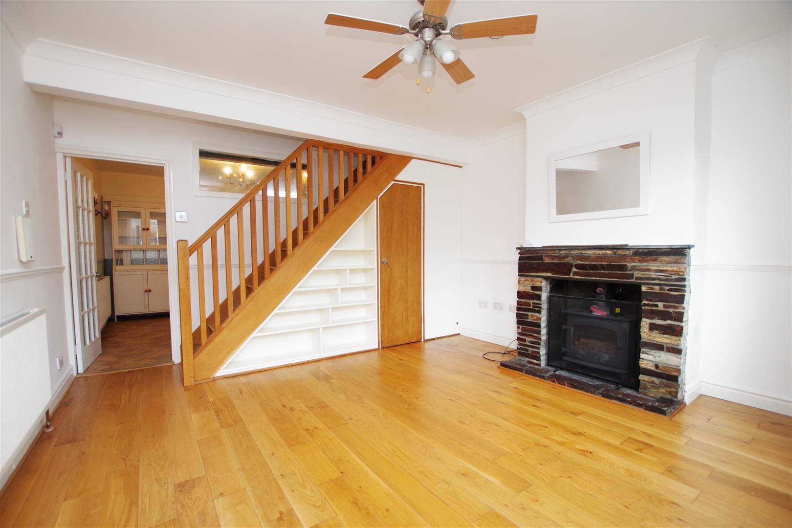 Composite front door. uPVC triple glazed window to front elevation. Stairs to first floor. Understairs cupboard. Wood burner with brick surround. Wood flooring. Radiator.