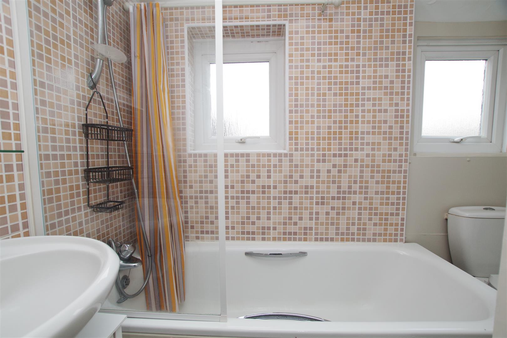 Obscured uPVC windows to rear and side elevation. White suite comprising of panelled bath with shower over, pedestal wash hand basin and low level W.C. Part tiled walls. Vinyl flooring. Radiator.
