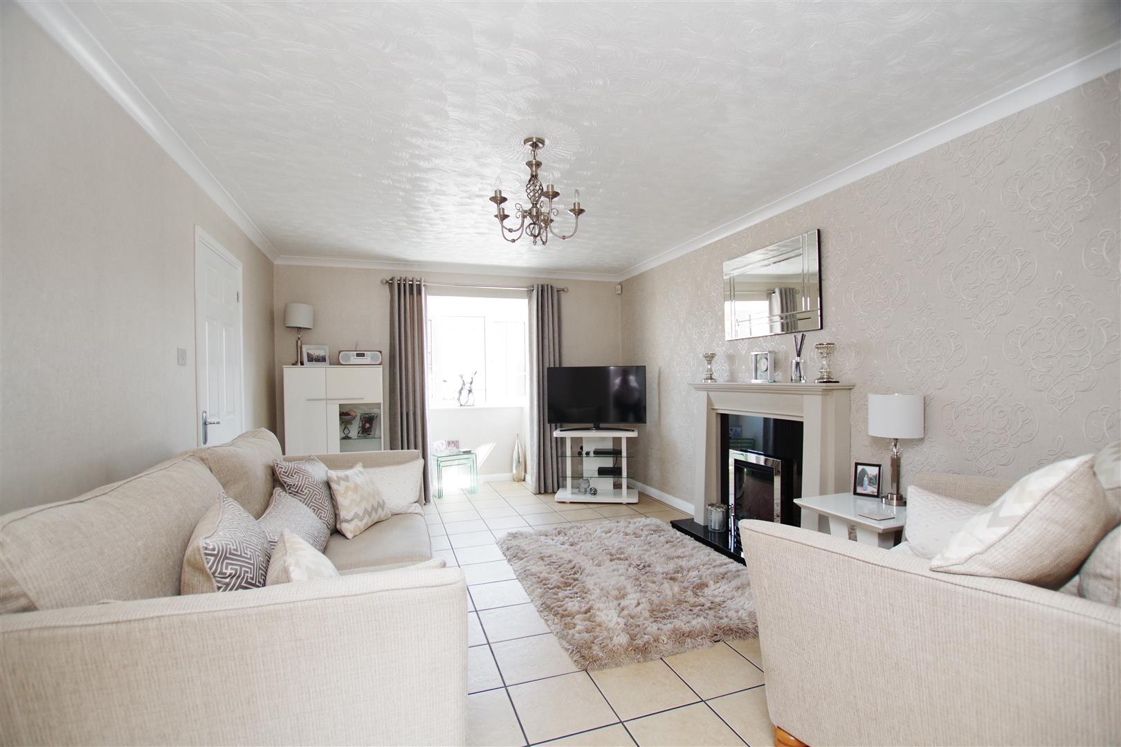 uPVC bay window to front elevation. Electric fireplace with Portland stone surround. Tiled flooring. Radiator. Opening to dining room.