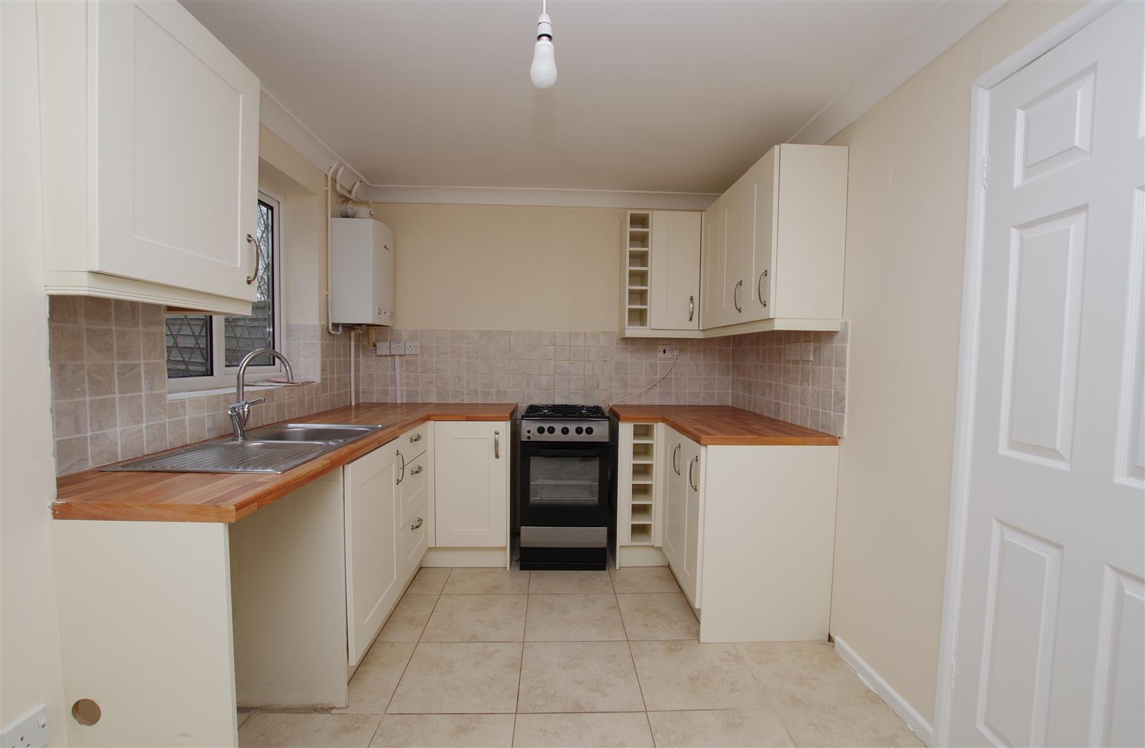 uPVC door and window to rear elevation. Wall and base units with rolled edge worktops over. Stainless steel sink. Freestanding cooker. Space and plumbing for washing machine. Understairs cupboard. Part tiled walls. Tiled flooring. Radiator.