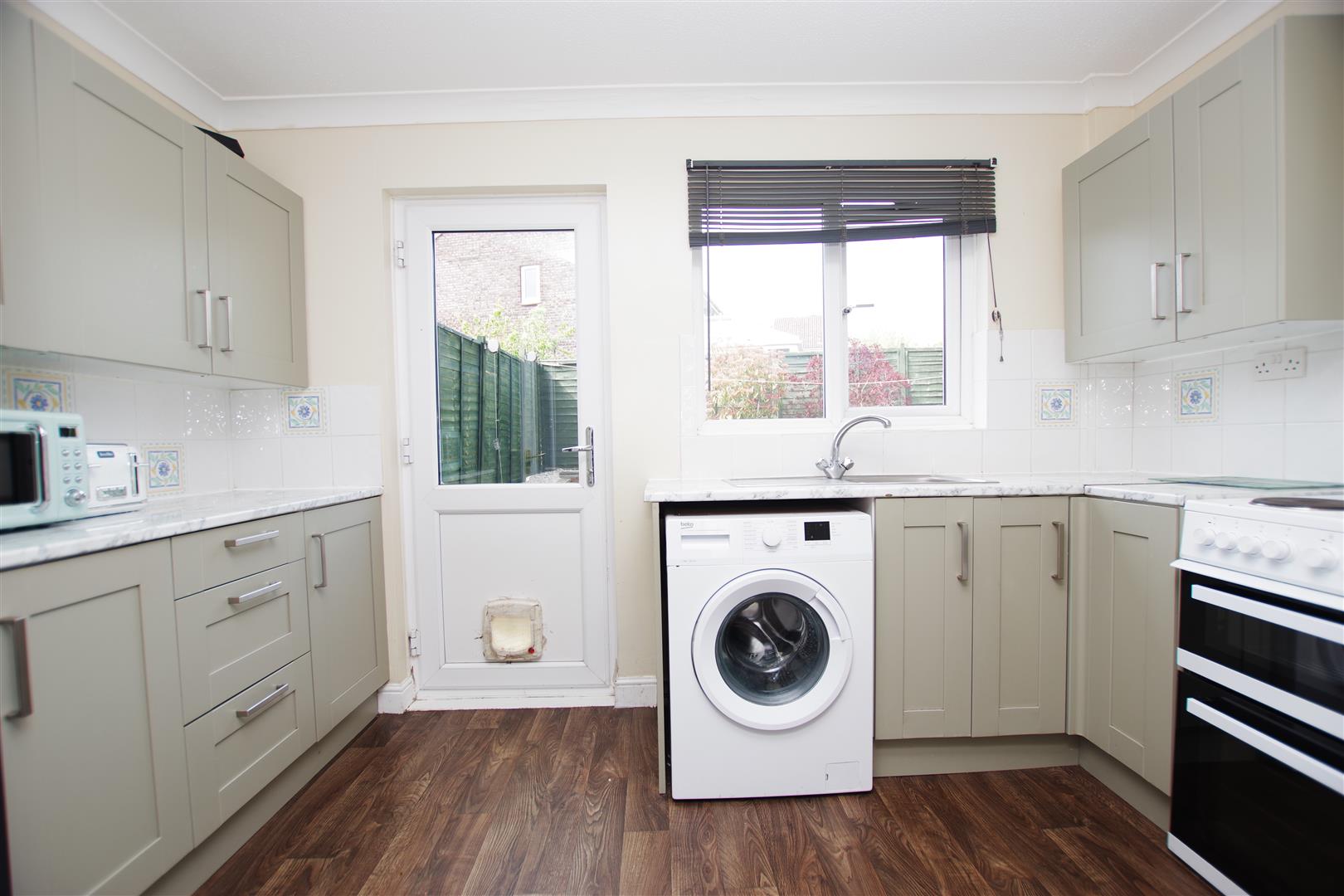 uPVC window and door to rear elevation. Wall and base units with rolled edge worktops over. Stainless steel sink and drainer. Freestanding cooker. Space and plumbing for washing machine. Space for fridge/freezer and tumble dryer. Part tiled walls. LVT flooring.