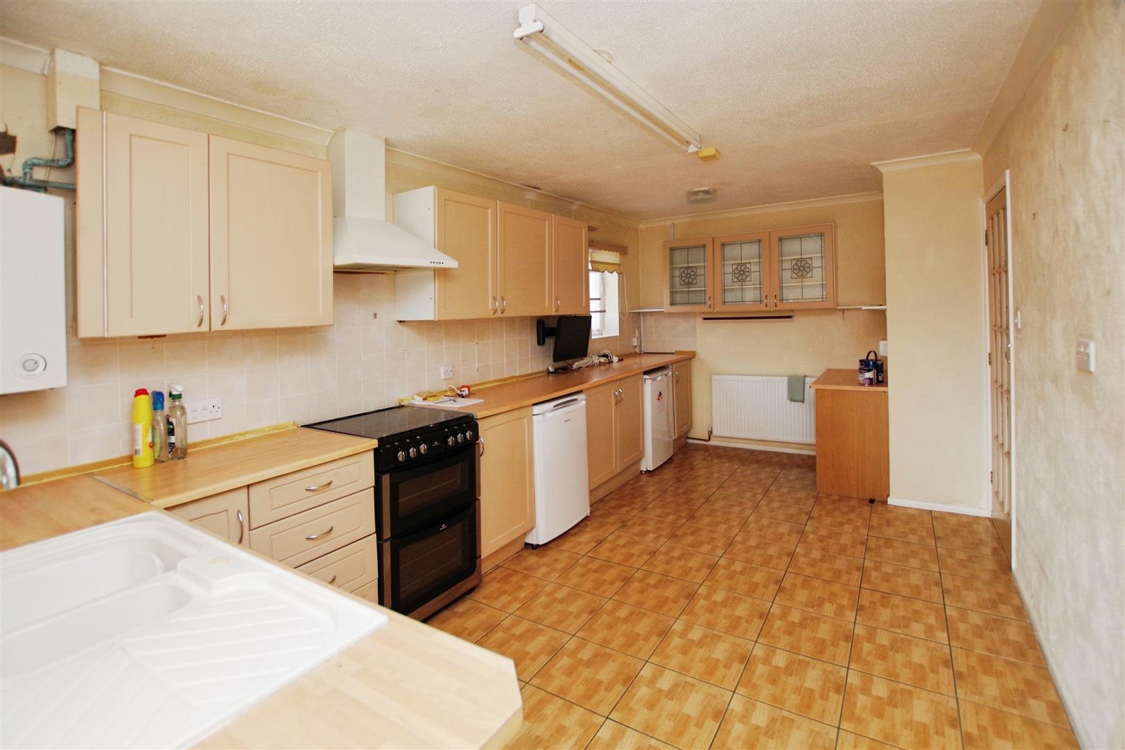 uPVC door to dining room. uPVC window to side and dining room. Wall and base units with rolled edge worktops over. Acrylic sink and drainer with half bowl. Freestanding cooker with extractor hood over. Space for undercounter fridge and freezer. Part tiled walls. Tiled flooring. Radiator.