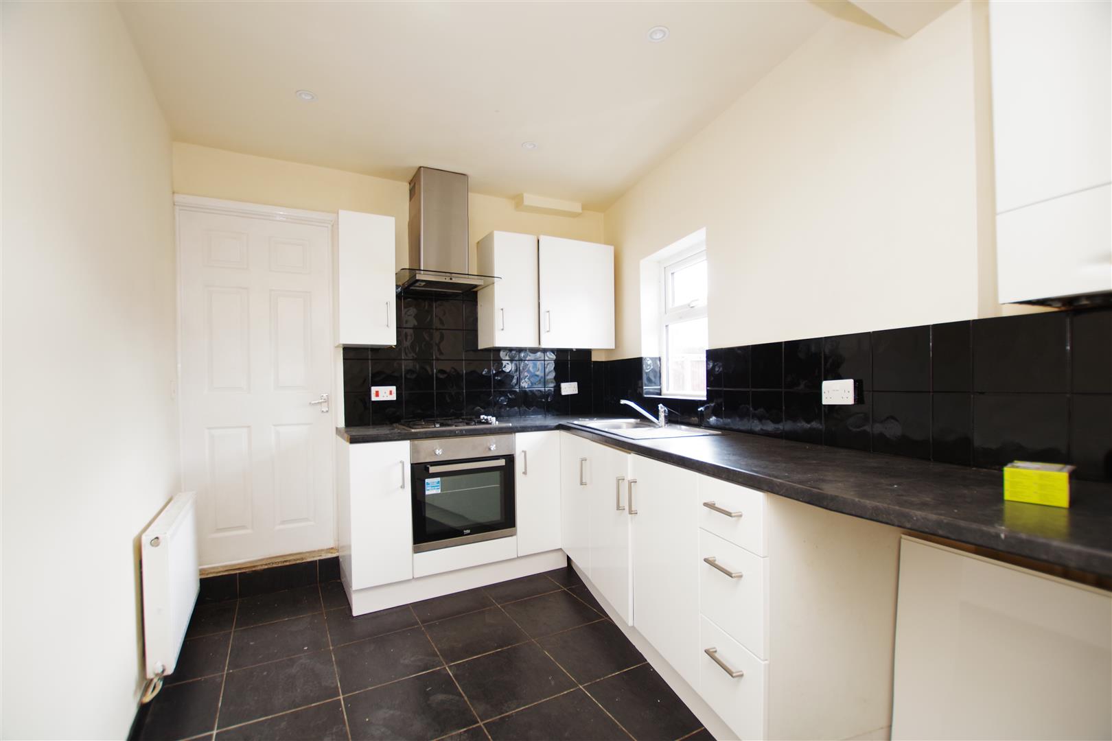 uPVC window to side elevation. Wall and base units with rolled edge worktops over. Stainless steel sink and drainer. Built in single oven. Gas hob with extractor hood over. Space and plumbing for washing machine. Part tiled walls. Tiled flooring. Radiator.