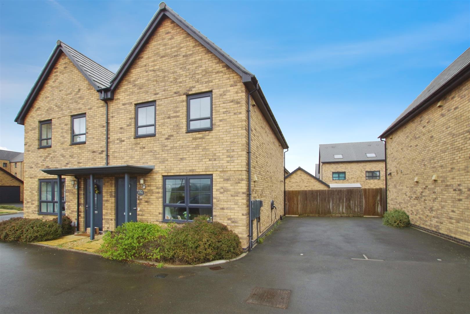 Driveway parking for two vehicles with additional visitors spaces to the front of the property. EV charging point. Outside light.
