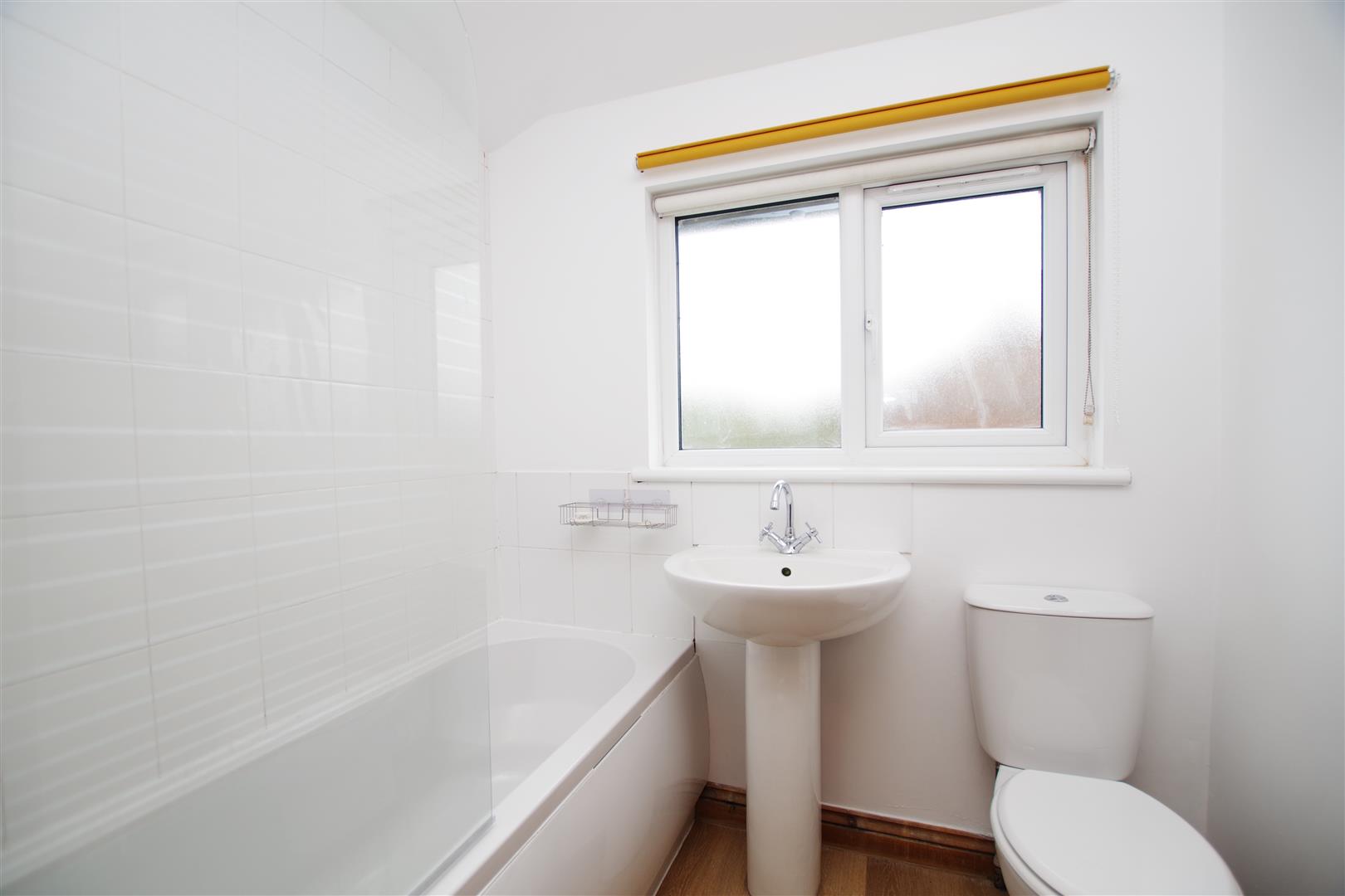 Obscured uPVC window to rear elevation. White suite comprising of panelled bath with shower over, pedestal wash hand basin and low level W.C. Extractor fan. Part tiled walls. Laminate flooring. Inset ceiling lights. Radiator.