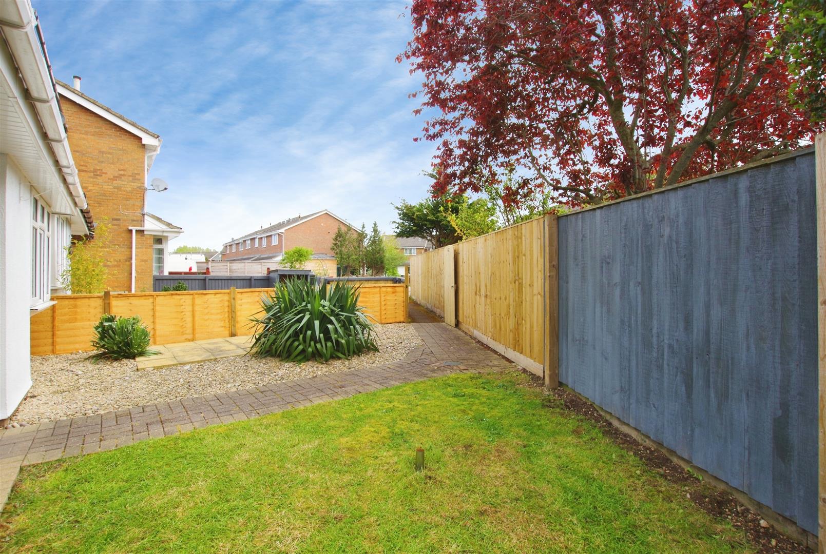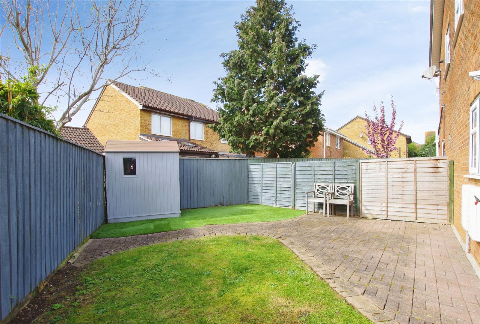 Enclosed by timber fencing with gated entrance. Block paved path leading to storm porch and patio area to the side. Astroturf with timber shed. Gravelled area with paved patio slabs. Laid to lawn. Outside storage cupboard. Outside light and tap.