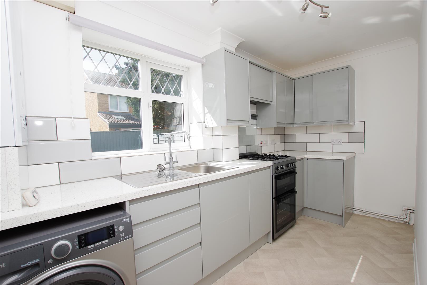 uPVC windows to front and side elevation. Wall and base units with rolled edge worktops over. Stainless steel sink and drainer. Freestanding cooker with extractor hood over. Space and plumbing for washing machine. Space for fridge freezer. Part tiled walls. Vinyl flooring. Radiator.