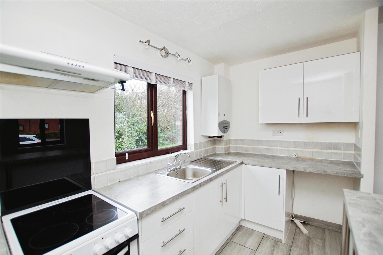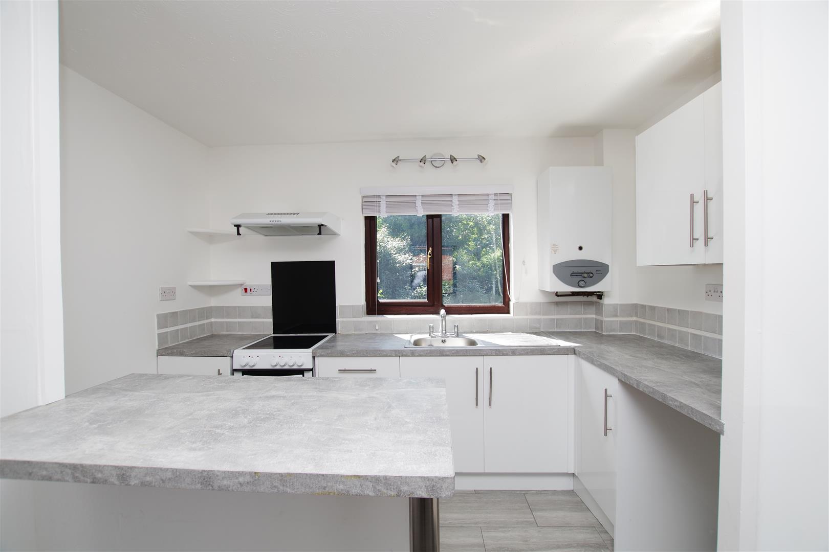 uPVC window to rear elevation. White gloss wall and base units with worktops over. Breakfast bar. Stainless steel sink and drainer. Freestanding cooker with extractor hood over. Space and plumbing for washing machine. Space for fridge/freezer. Part tiled walls. Tiled flooring. Wall light.