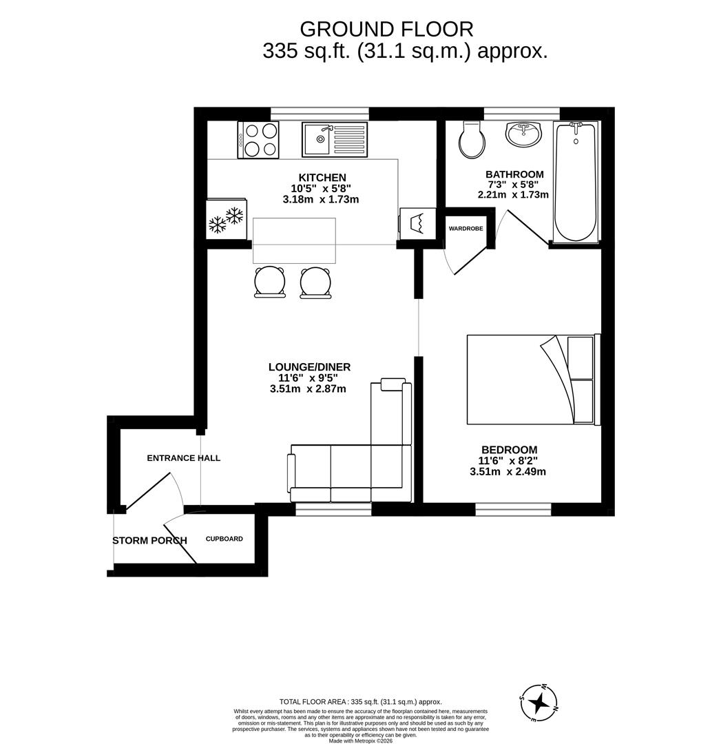 uPVC window to front elevation. Built in wardrobe. Electric heater.